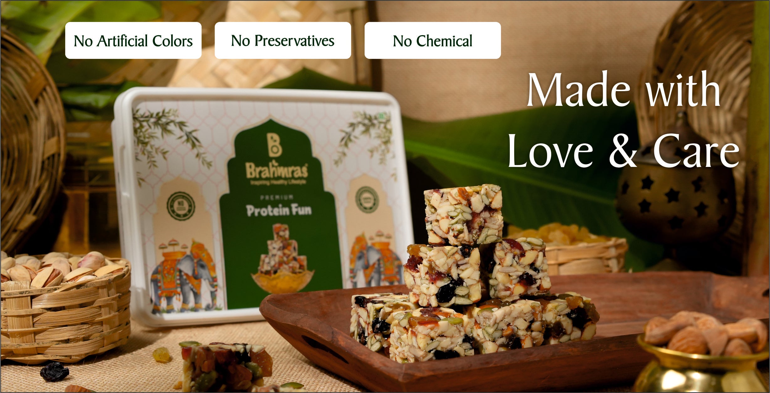 Brahmras Protein Fun – This special power-packed protein fun is lovingly hand-made with pure Desi A2 Gir Cow Ghee, a wholesome blend of nutritious dry fruits, seeds, and natural Honey. We use Honey instead of refined sugar, because nothing is better for your health than the natural sweetness of Honey.